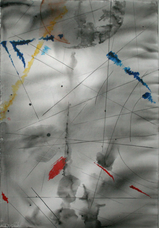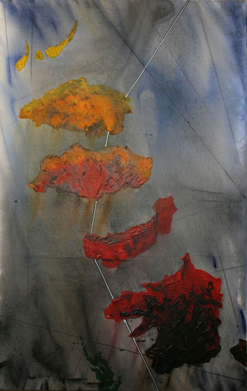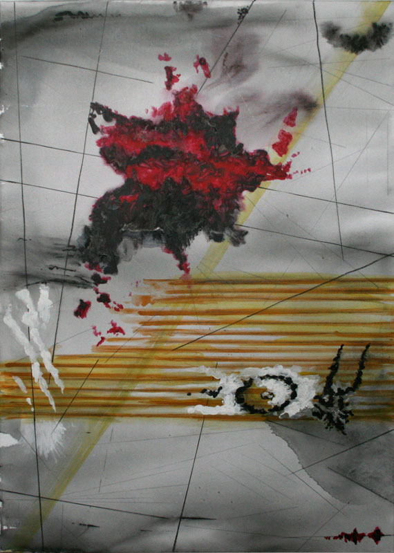 Farbspuren auf dem Maltisch als Auslöser von Peinture-Automatique-Malerei